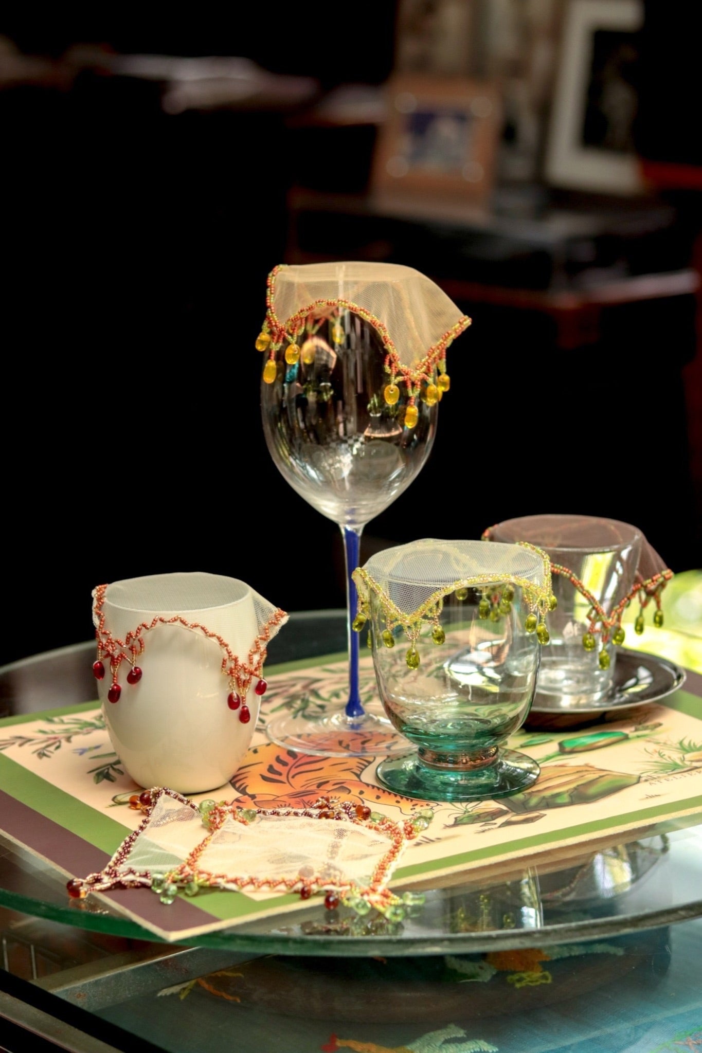 Hand-Embroidered Glass Cover - Set of 6 (Red)