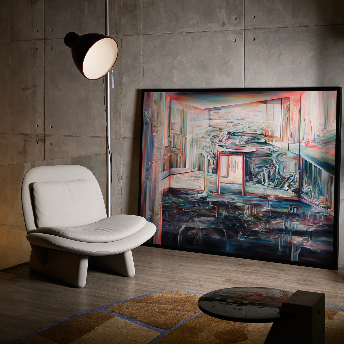 Her paintings can be seen as portals to daydreams — places of psychological and emotional escape, where colour and form intertwine in perpetual motion. Within these surreal dimensions, SAI offers viewers the chance to wander freely, to lose themselves, and to rediscover a sense of wonder in the boundless possibilities of perception.