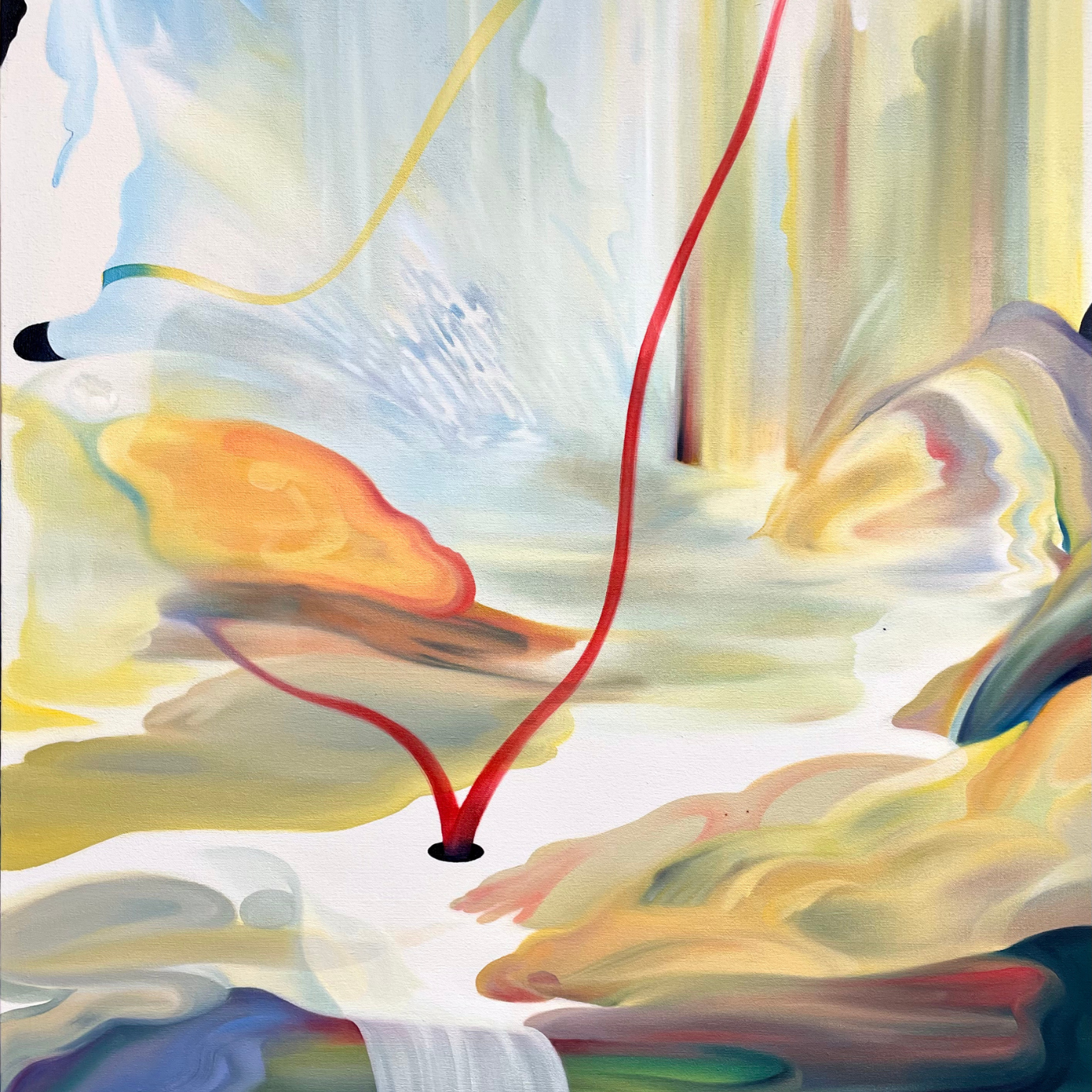 SAI DAMISA creates surreal, atmospheric, and abstract landscapes that evoke the sensation of drifting through a dream. Her paintings occupy a space between imagination and perception, where light, movement, and colour dissolve the familiar boundaries of time and place. Through a system of fluid marks, saturated hues, and layered transparencies, she constructs illusionistic realms that appear to glow from within — spaces that invite both contemplation and exploration.