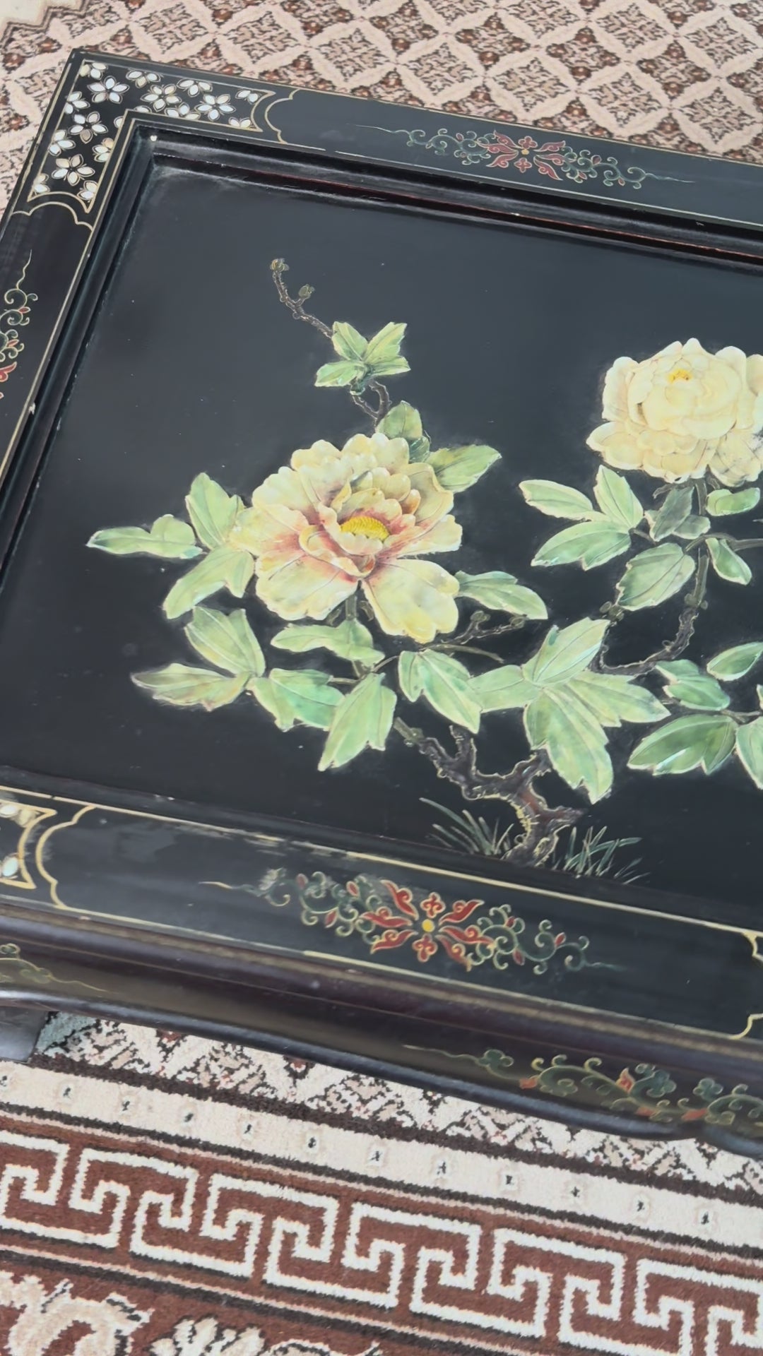 Oriental Lacquered Coffee Table with Pheasant and Floral Hand-Painted Motif | 107 x 54 x 48cm